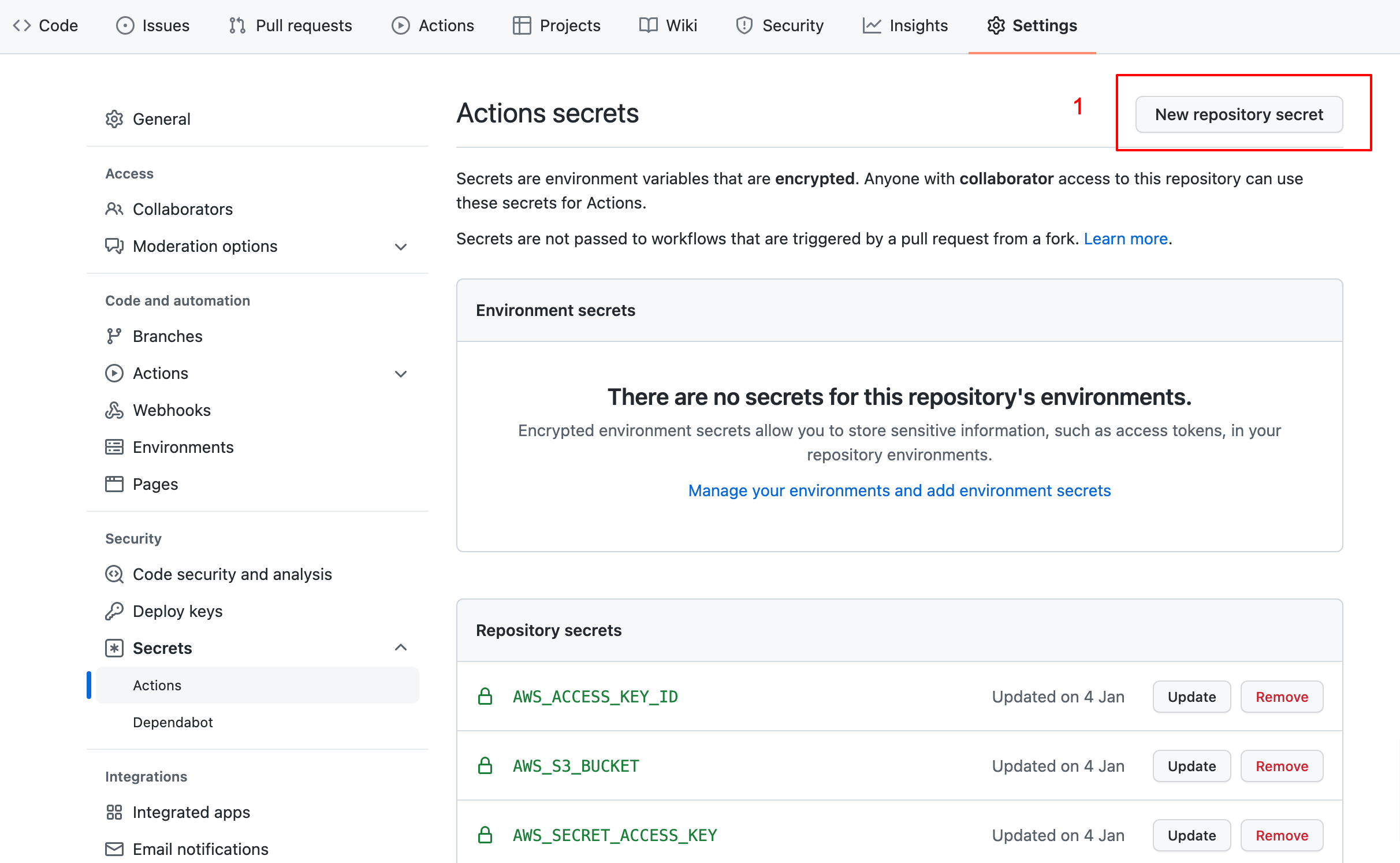 As we can see in above master.yml code, we need three AWS evnironment variables