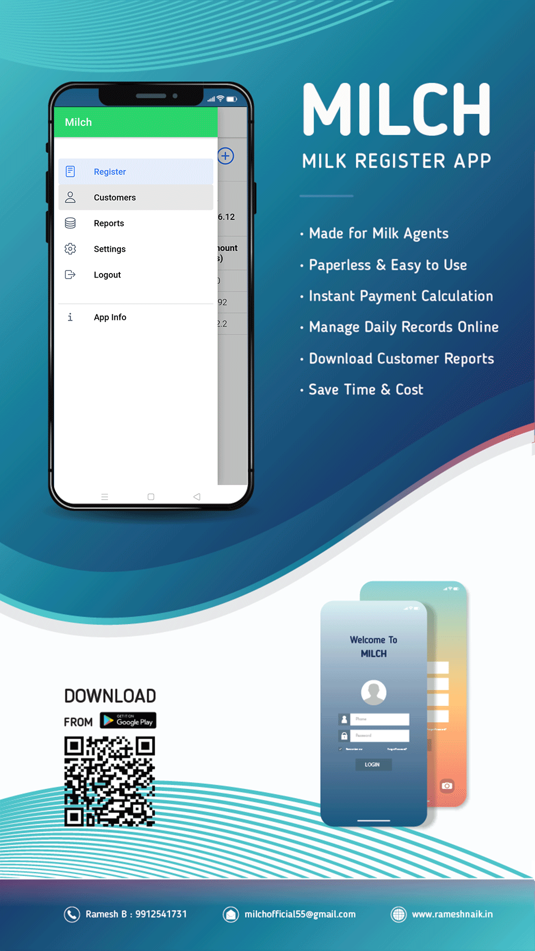 Milch is an application for milk agents (Milk collectors from farmers) to manage their daily activities of customers milk entries through online and go for paperless works.